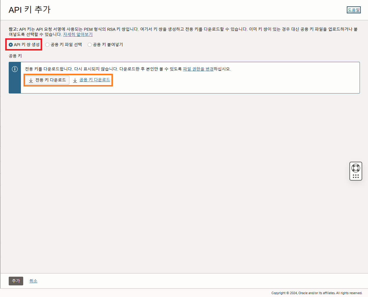 키를 업로드한 후 [추가]를 누른다.