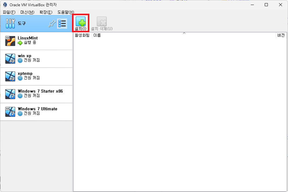 VirtualBox 확장팩 설치