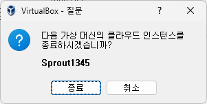 [종료]를 누르면 인스턴스가 종료된다. 여기서 말하는 종료는 인스턴스의 전원을 끄는 것이 아닌, 인스턴스 자체를 종료하고 할당받은 자원을 서버에 반환하는 것이므로 주의한다.