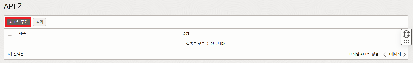 'API 키 추가'를 눌러 키를 추가하는 창을 연다.