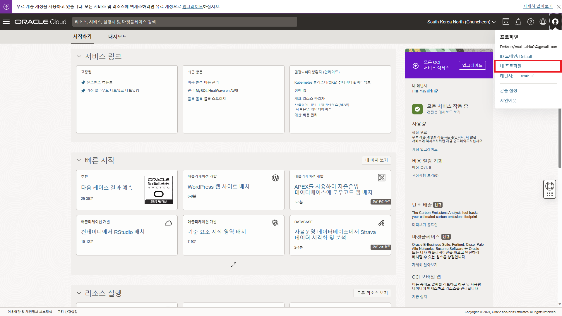 Oracle Cloud에 로그인한다.