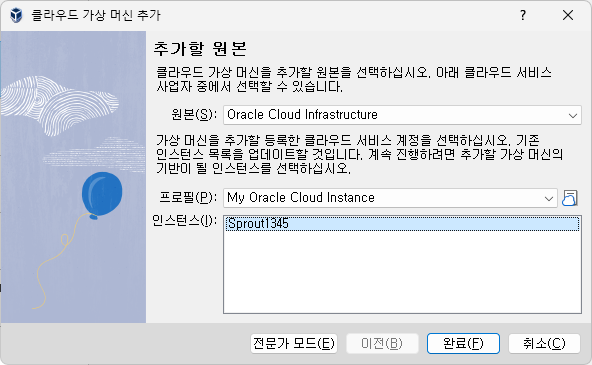 VirtualBox에 클라우드 인스턴스 프로필 추가
