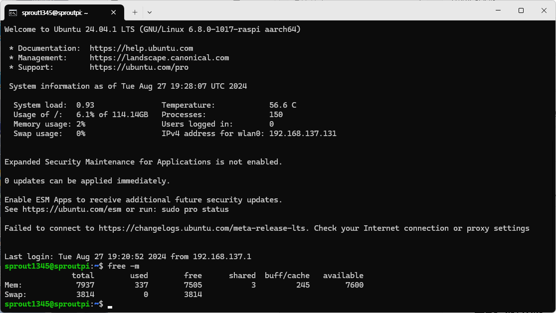 Mem 값이 7937이므로, 전체 메모리 총량은 8GB이다.