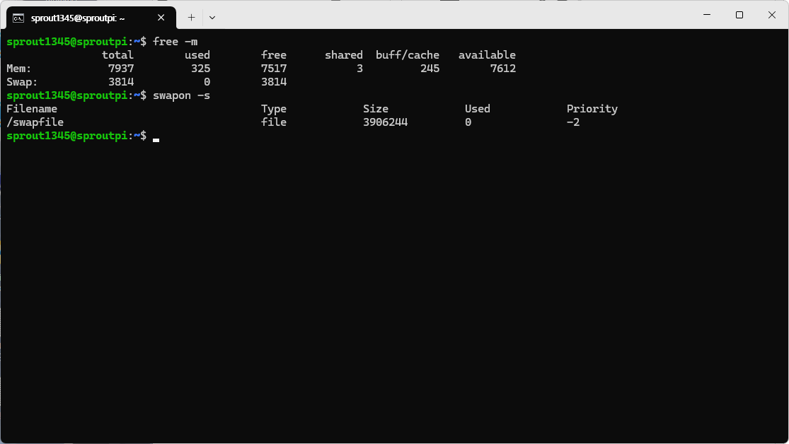 물론 라즈베리 파이에서 그렇게나 많은 가용 메모리를 요구하는 프로그램을 구동할 일은 거의 없으나, 만일을 대비하여 나쁠 것이 없는 것은 사실이므로, 적당한 크기의 스왑 파일을 만들어 두는 것은 도움이 된다.