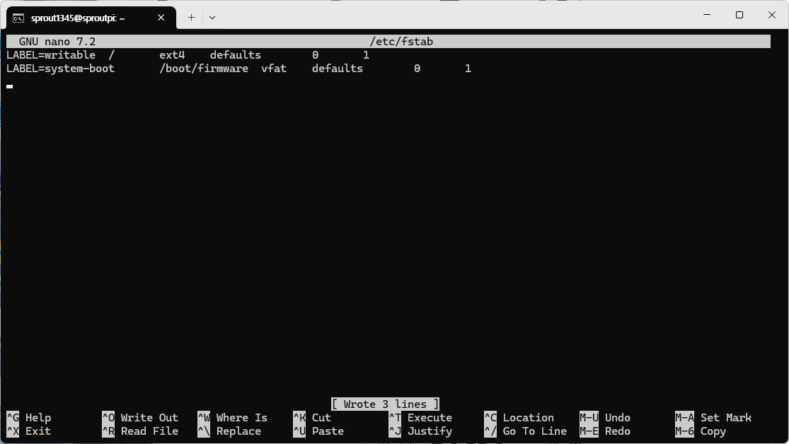 해당 항목을 입력한 후, [Ctrl + O]를 눌러 저장한 후, [Ctrl + X]를 눌러 편집기를 닫는다.