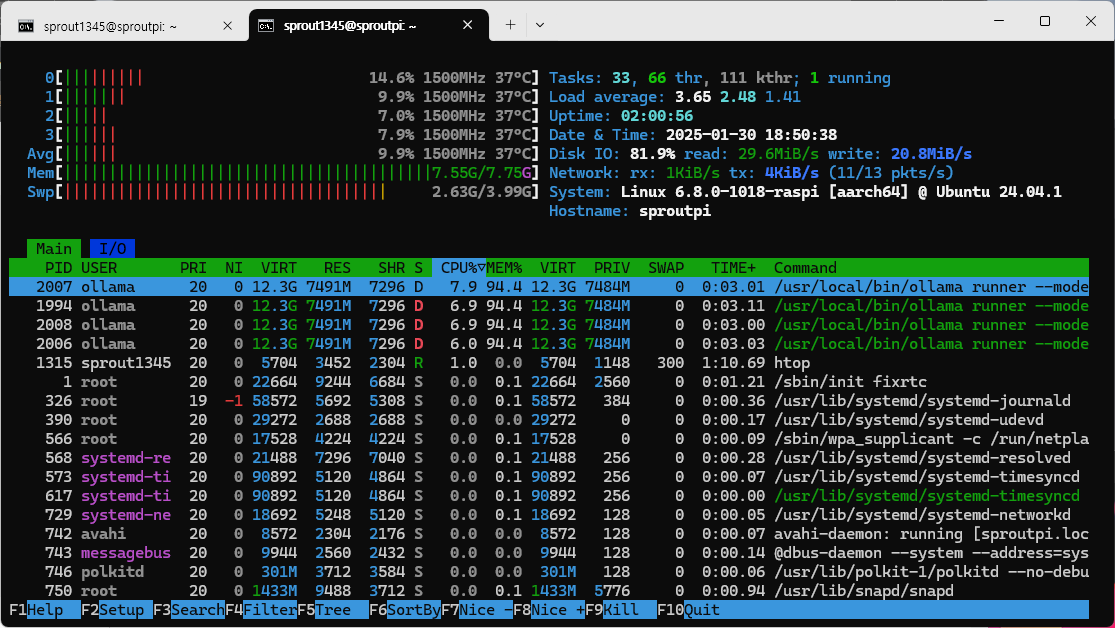 라즈베리 파이 5 8GB에서는 Qwen-7B와 Llama-8B까지가 사용 가능한 한계이며, Qwen-14B 모델도 실행'은' 가능하지만, 모델 자체적으로 RAM을 9-10GiB 가까이 사용하기에 SWAP은 필수이며, SWAP 영역만 2-3GiB 사용하기에 실사용은 무리이다. 사용을 원한다면 라즈베리 파이 5 16GB가 요구된다.