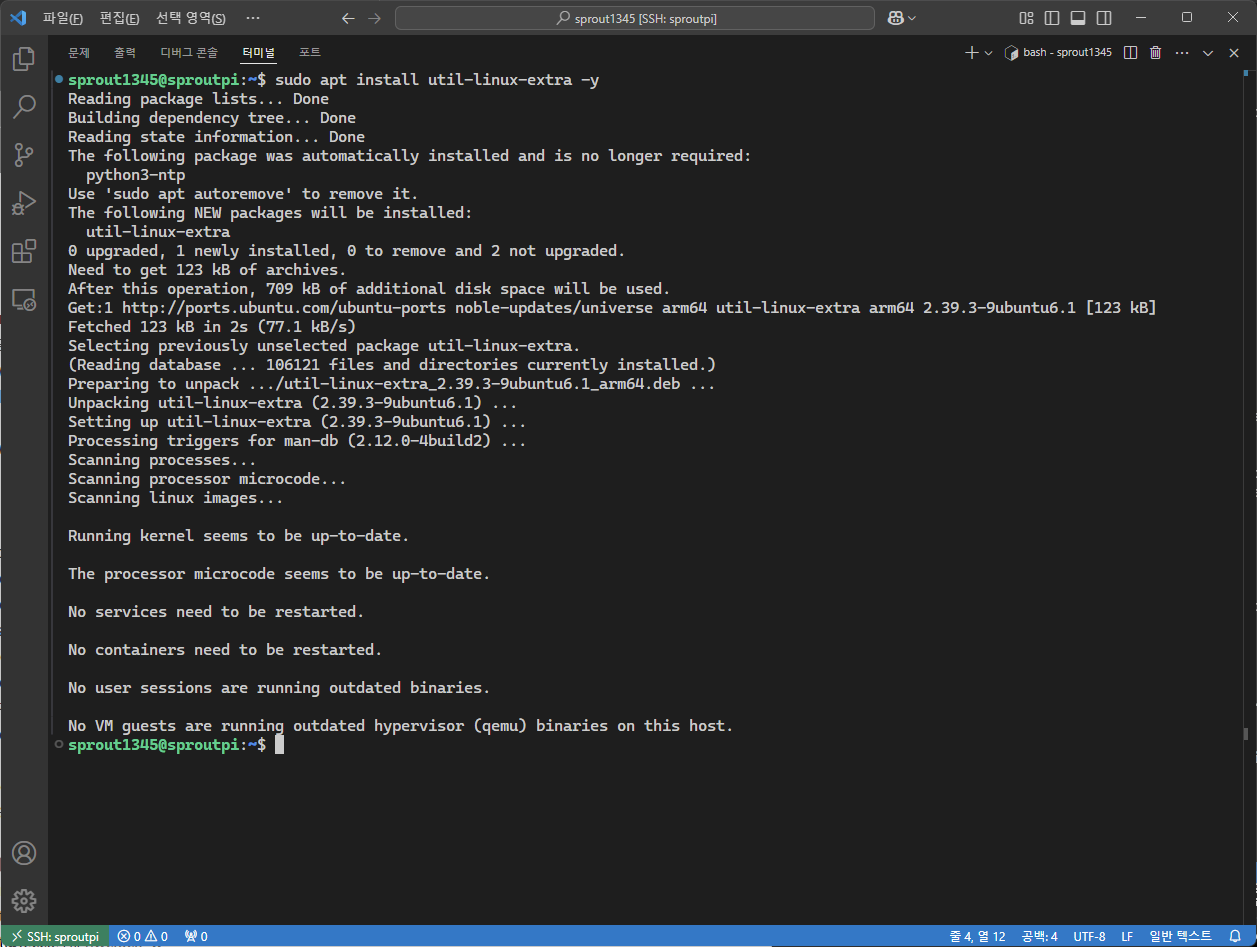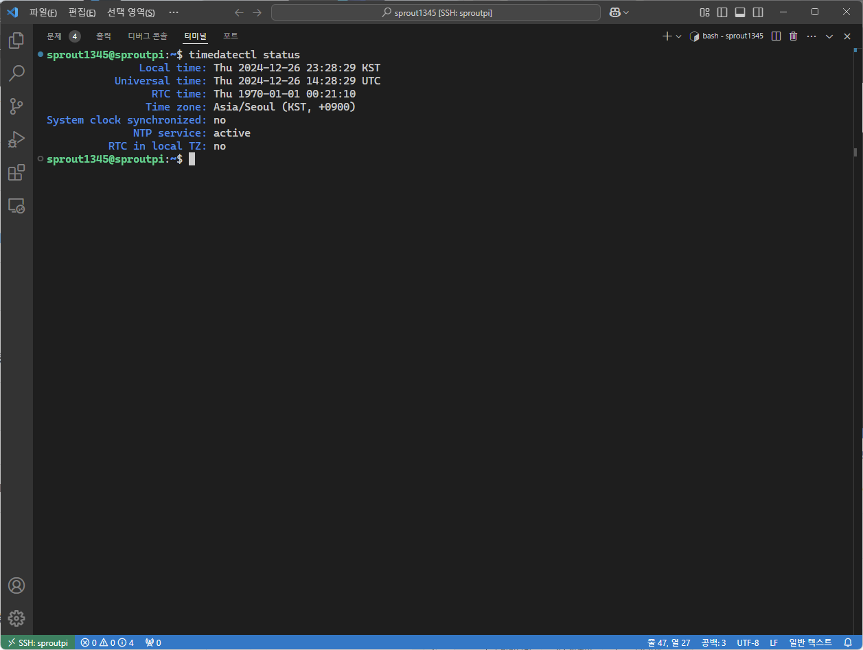 재부팅 이후 timedatectl을 이용해 잘 작동하는지 확인하자.