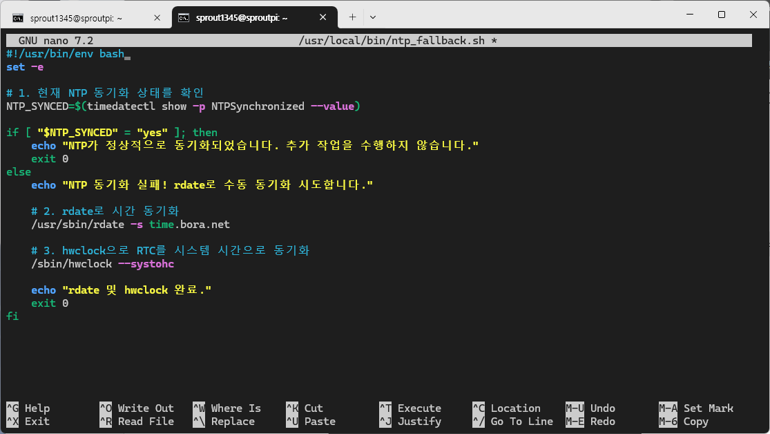 Apr 29 00:03:26 sproutpi ntp_fallback.sh[2374]: NTP 동기화 실패! rdate로 수동 동기화 시도합니다.