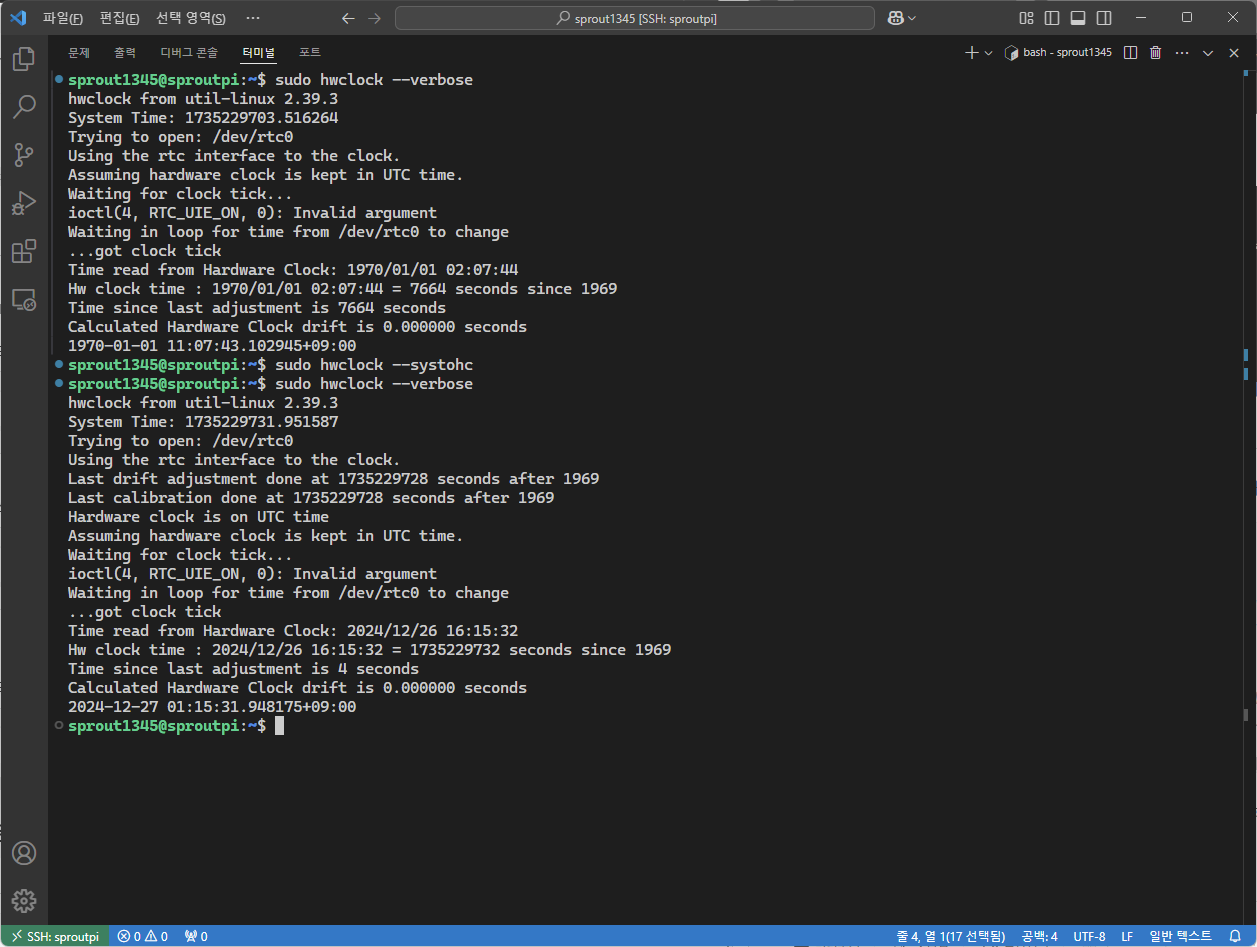 # 3. hwclock으로 RTC를 시스템 시간으로 동기화