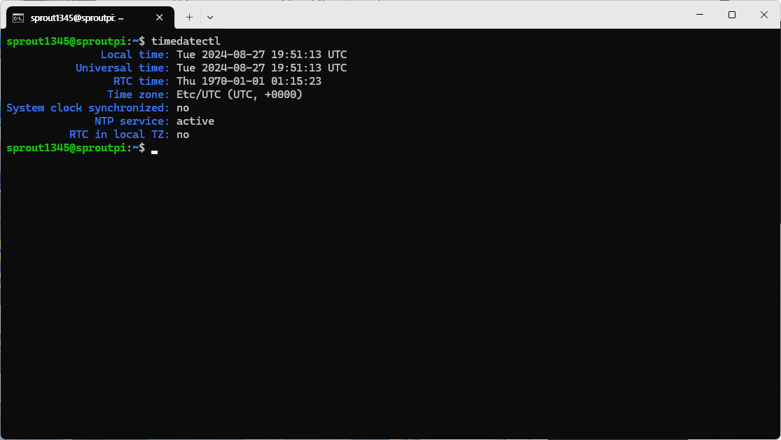 sprout1345@sproutpi:~$ timedatectl