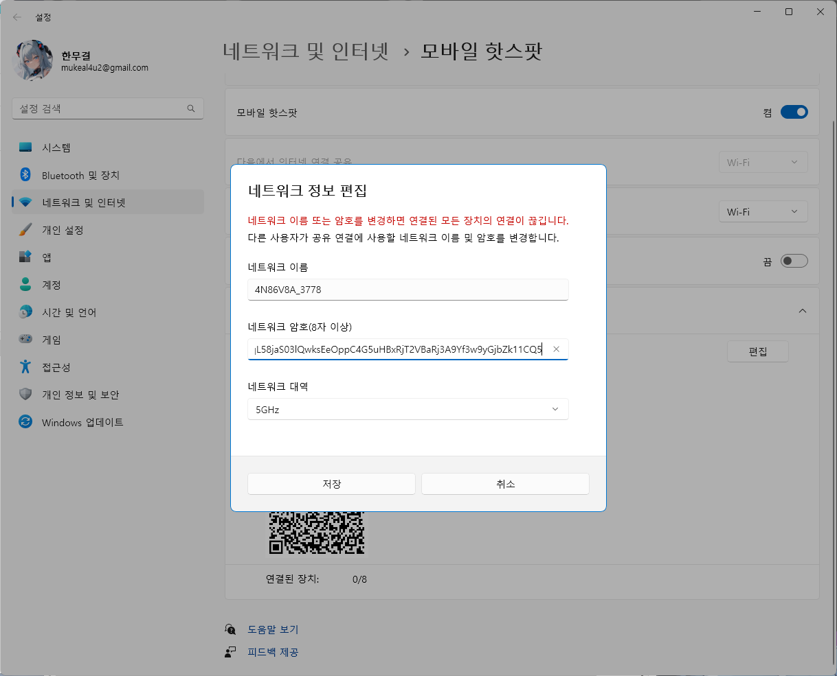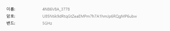 "비밀번호 원문"의 자리에 자신이 설정한 비밀번호를, SSID 자리에 핫스팟의 이름을 넣고 실행하면 된다.