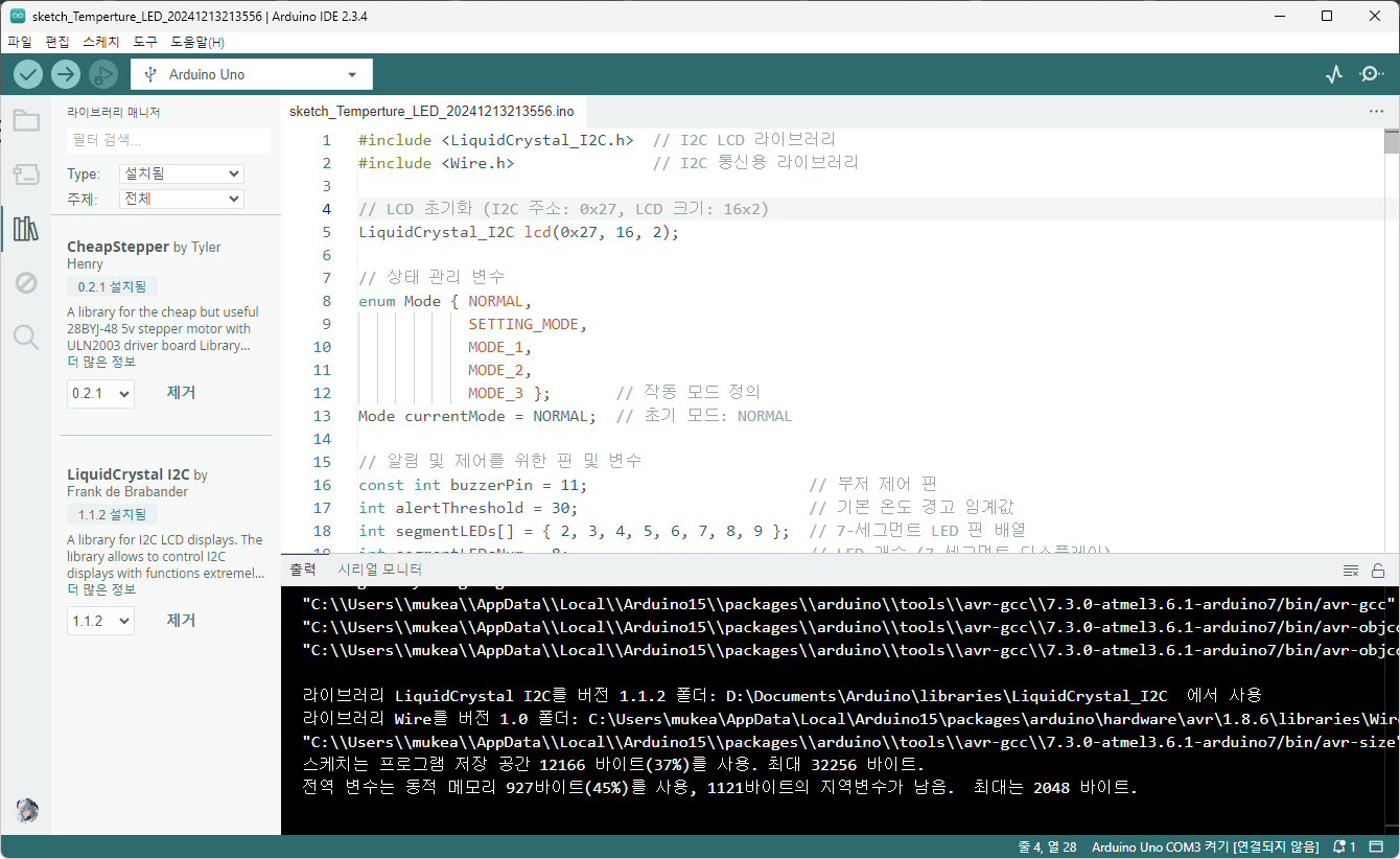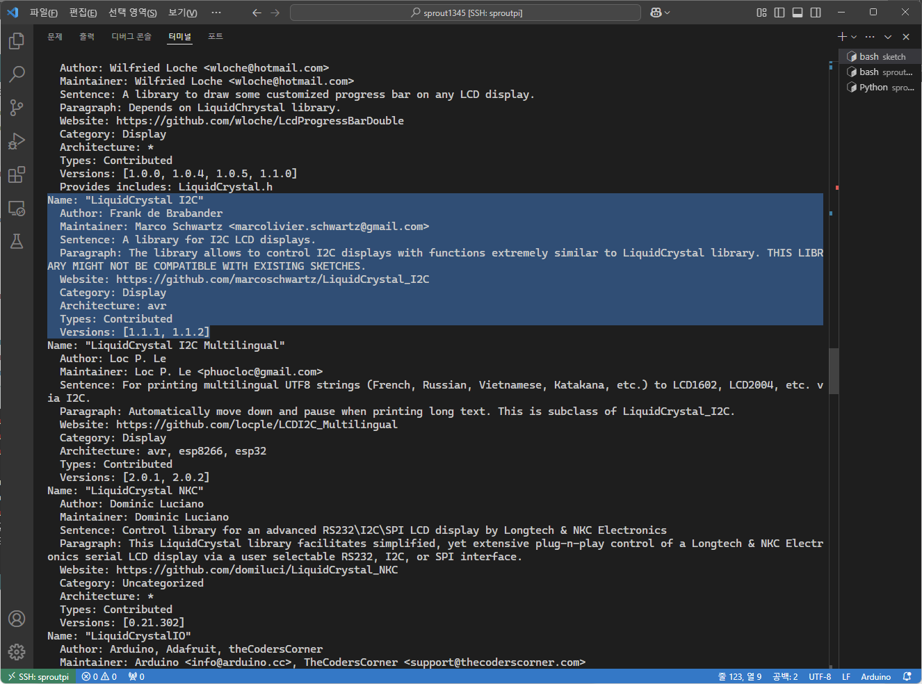 예를 들어, LiquidCrystal I2C 라이브러리를 설치하려면 아래와 같은 절차를 거친다.