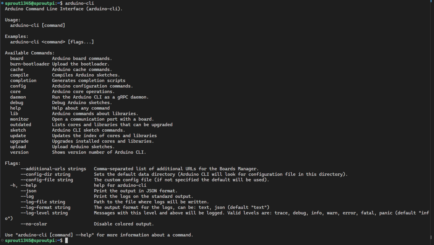 sprout1345@sproutpi:~/sketch$ arduino-cli board list
