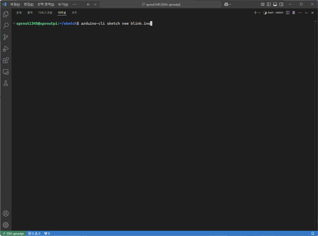 새 아두이노 스케치를 작성하려면 아래의 명령을 입력한다.